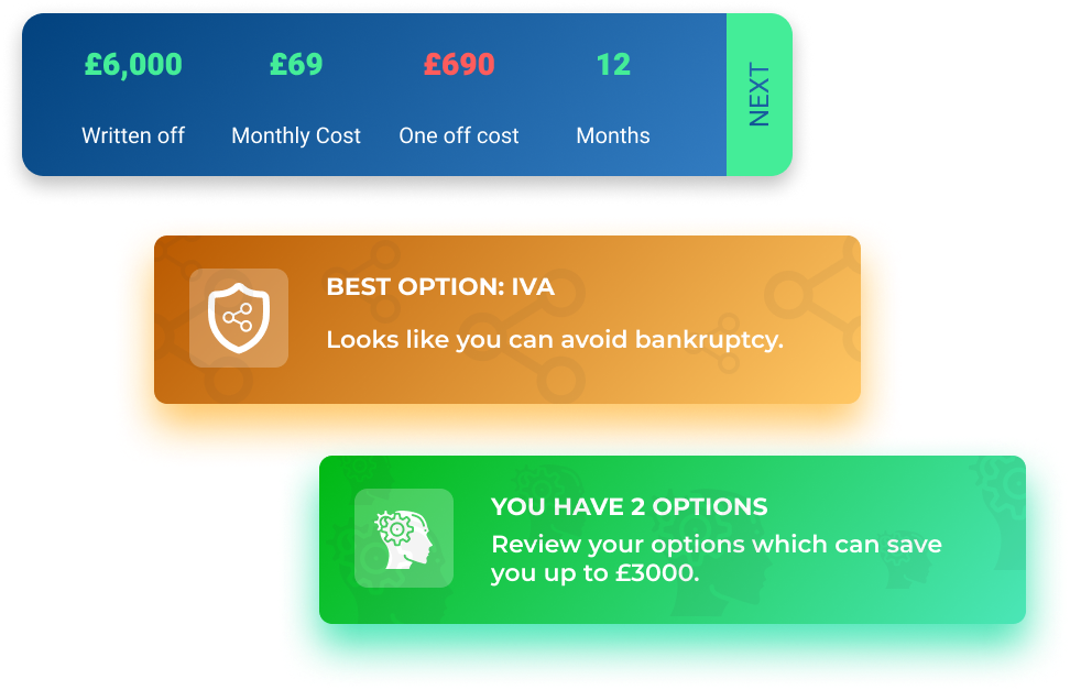 We analyse your debts and display your best ways forward. You could write off up to 81% of whatever you owe.